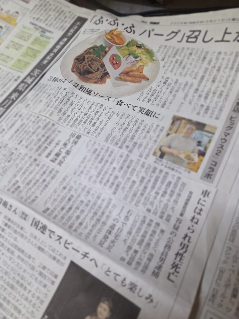 原町小学校6年2組の子たちとのコラボメニュー「ふふふハンバーグ」が、河北新報3月21日の夕刊と、23日の朝刊で取り上げていただきました!